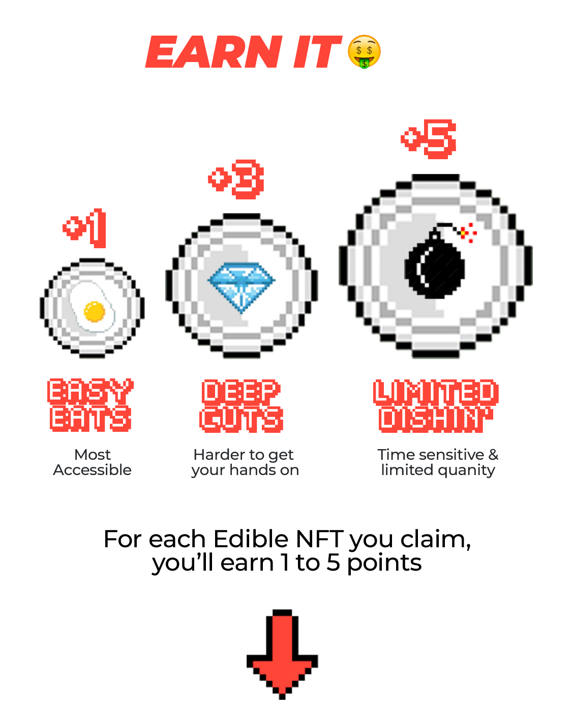 Every Edible NFT you collect will have points associated with it. The more points you have, the more rewards you can claim.