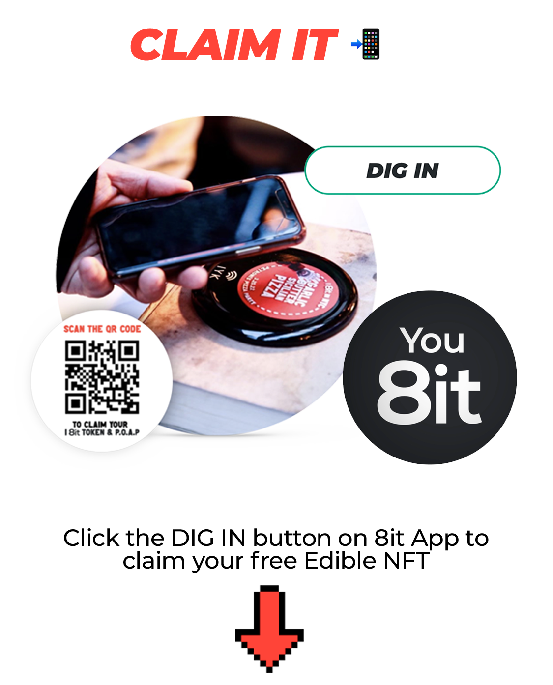 Simply press the ‘Dig In’ button from the 8it App, click on ‘Claim NFT’. Follow Instructions to claim.