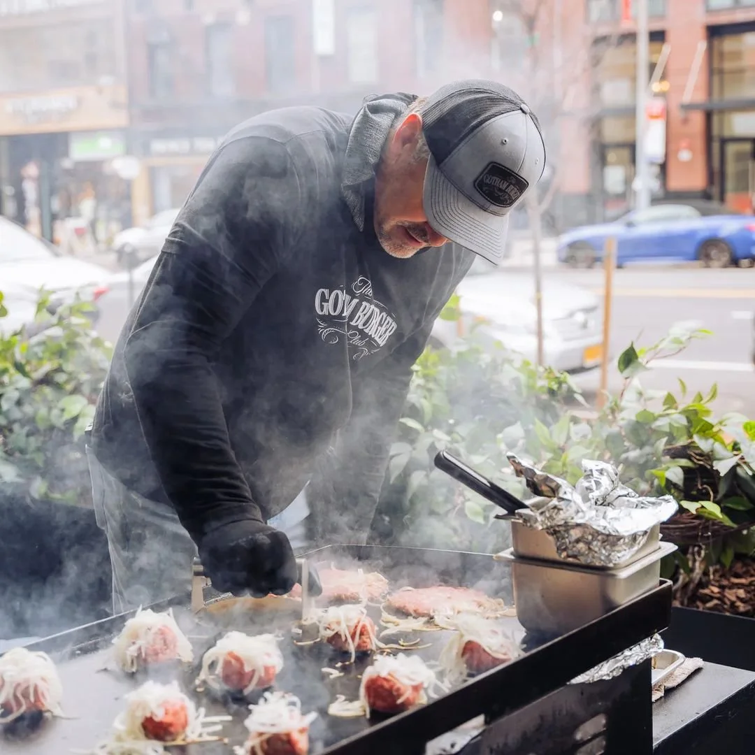 Additionally, pop-ups are great stages to test menu ideas and refine a conceptâs identity. Youâll notice some pop-ups focus on mastering one dish extremely well, over and over again. Take Mike Puma of Gotham Burger Social Club for example, who has probably smashed over 1 Million smash burgers at his pop-ups in the last few years. Other pop-ups like Hera and Din Din have constantly rotating menus based around a specific cuisine or seasonality, which allows them to test out an array of dishes and themes.